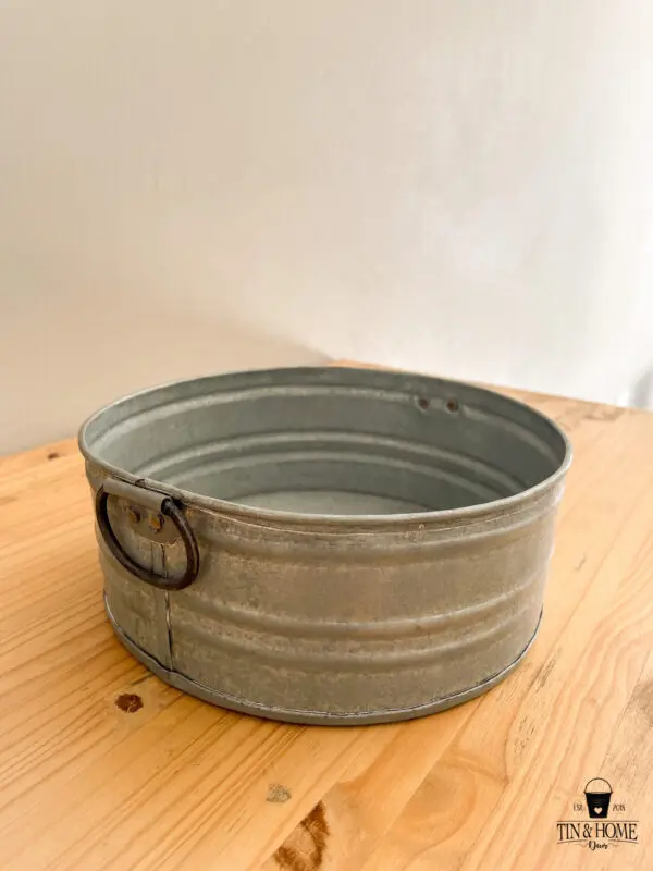 - Tilted with Tin Handles: 25 cm D (Top) x 22 cm D (Bottom) x 6 cm H